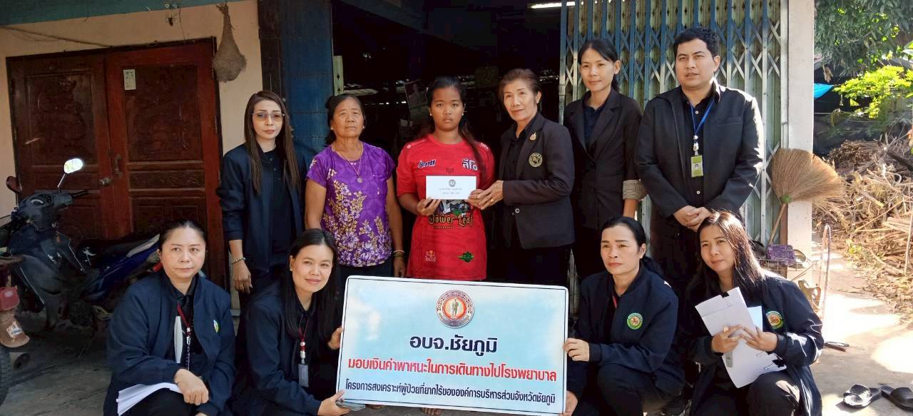 วันพุธที่ 24 ธันวาคม พ.ศ.2568 เวลา 9.00 น. เจ้าหน้าที่กองสวัสดิการสังคม ร่วมด้วย เจ้าหน้าที่ อบจ.ชัยภูมิ เดินทางไปมอบค่าพาหนะในการเดินทางไปโรงพยาบาล ตามโครงการสงเคราะห์ผู้ป่วยยากไร้ขององค์การบริหารส่วนจังหวัดชัยภูมิ จำนวน 2 ราย